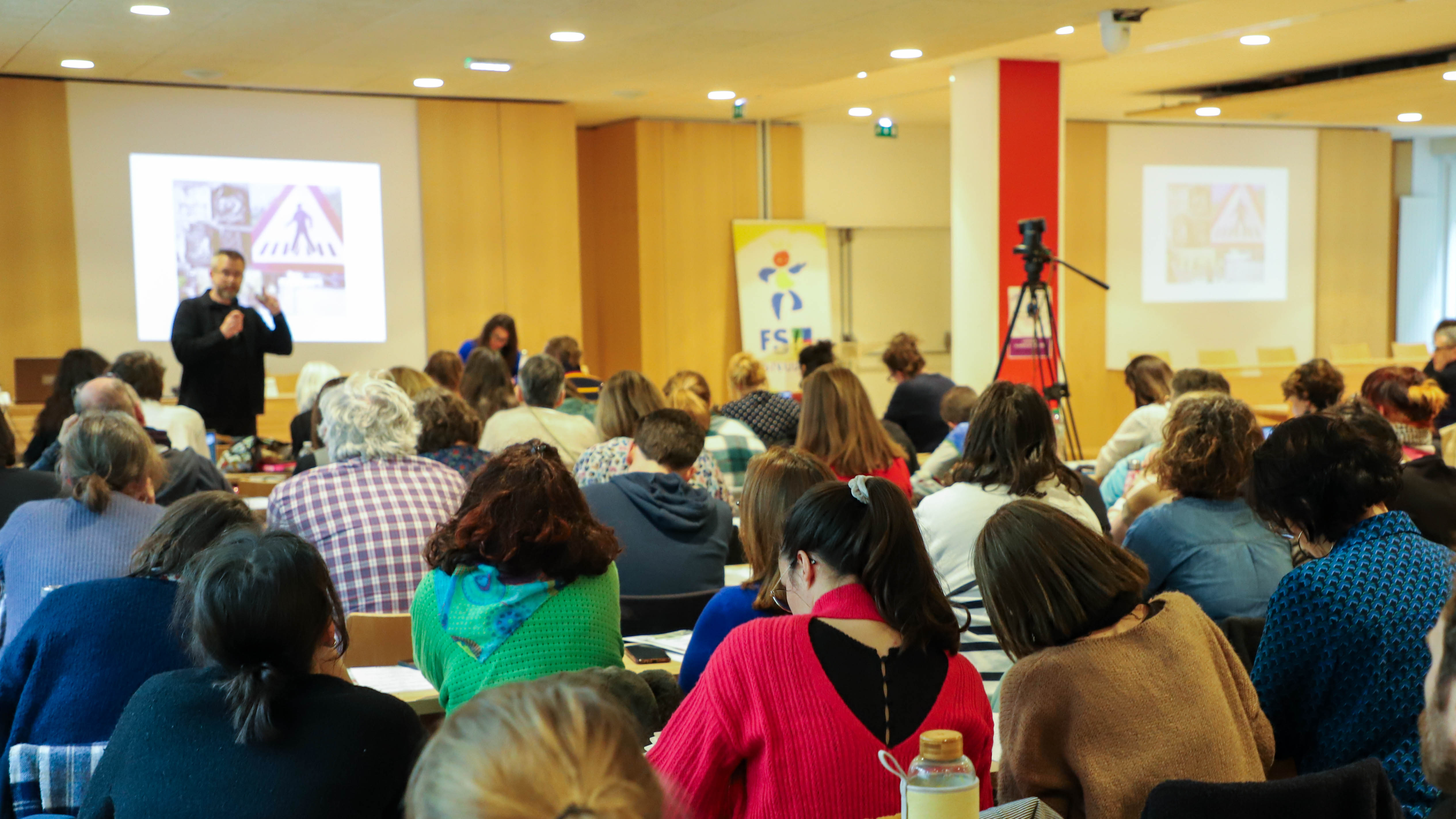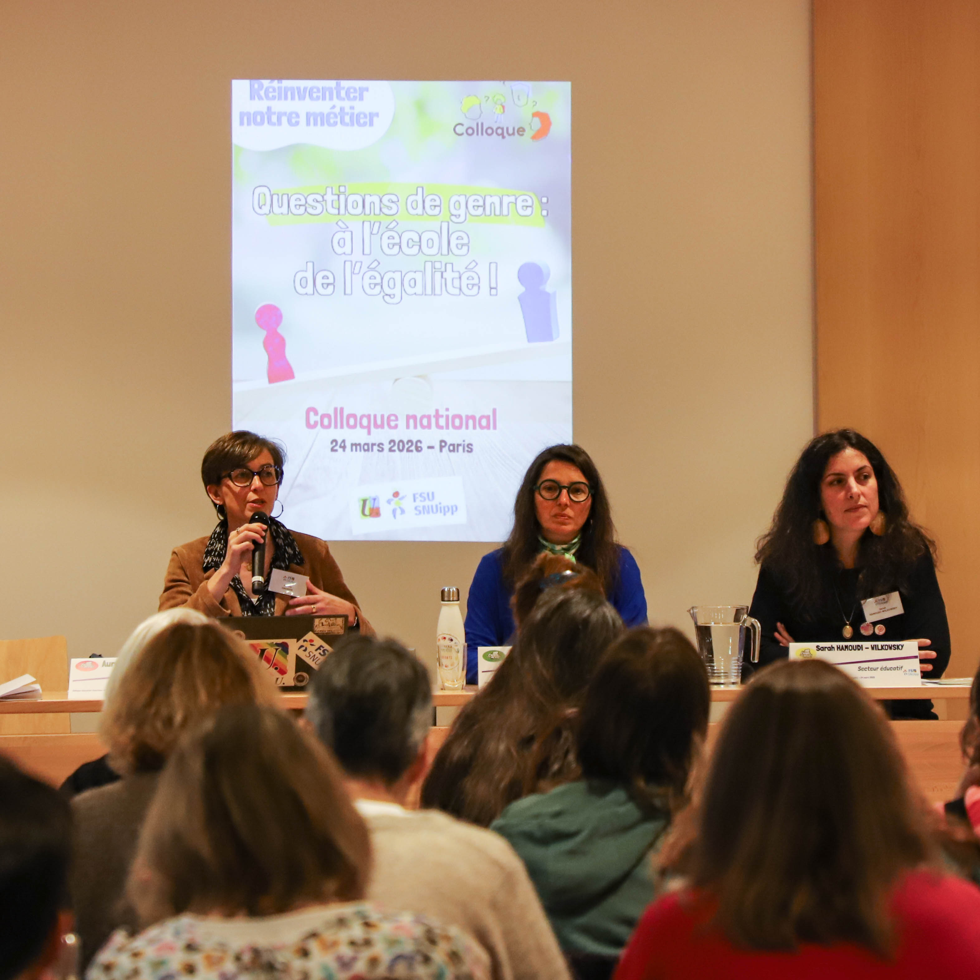 Le colloque “Question de genre : à l’école de l'égalité” organisé par la FSU-SNUipp le mardi 24 mars 2026 affichait complet. Des collègues de toute la France se sont rassemblé·es à cette occasion pour échanger avec les intervenant·es.